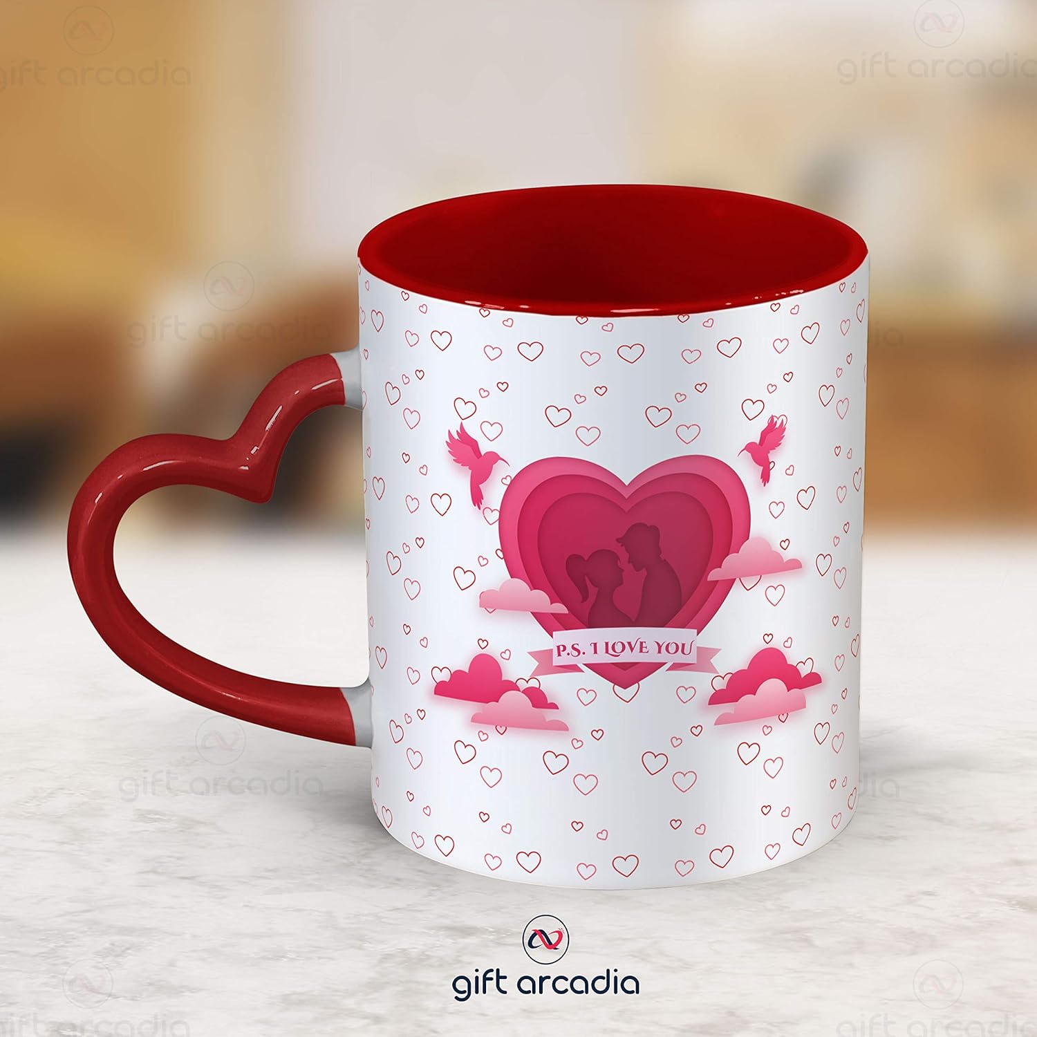 Gift Arcadia Ceramic P.S. I Love You Heart Handle Coffee Mug – 1 Piece, Red, 330ml (A207)