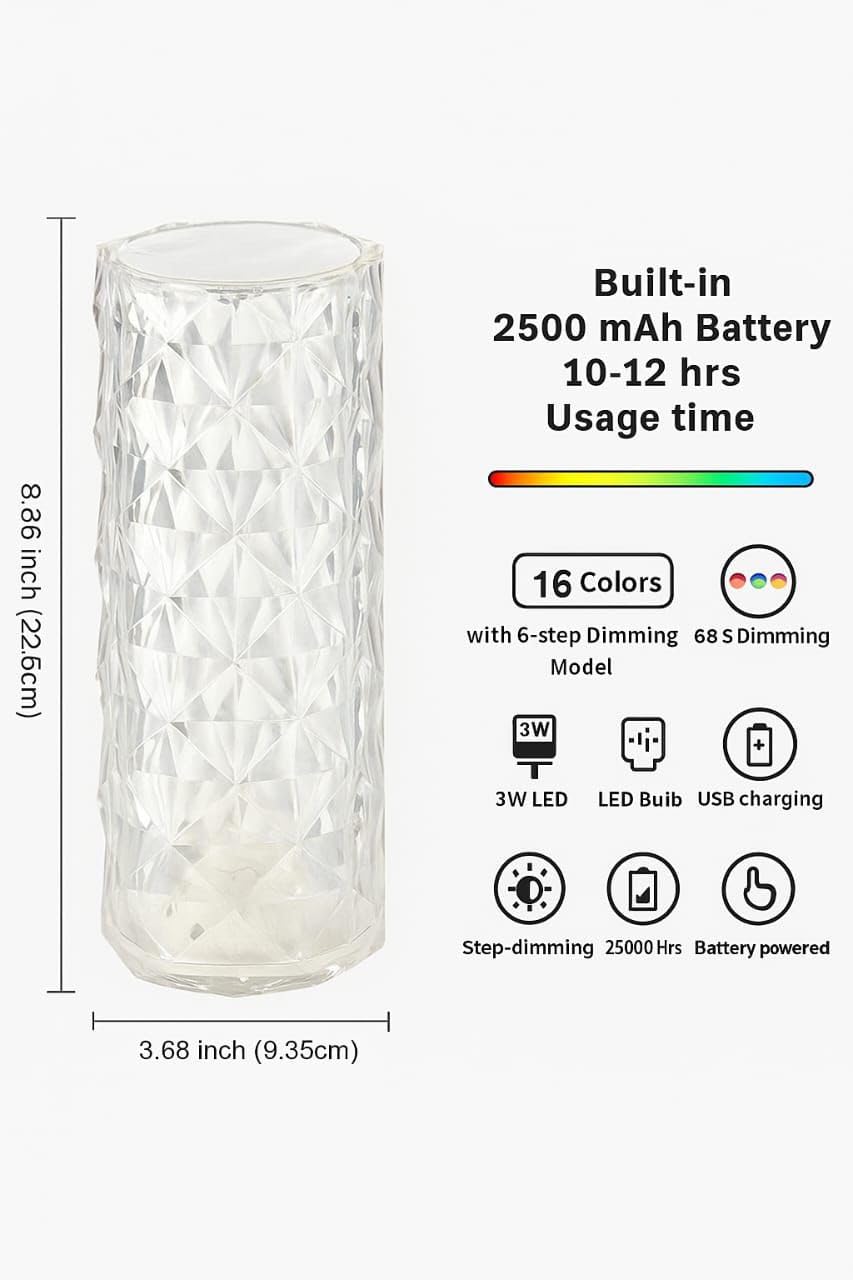 Title: Rose Diamond Lamp – Elegant Crystal Touch Light